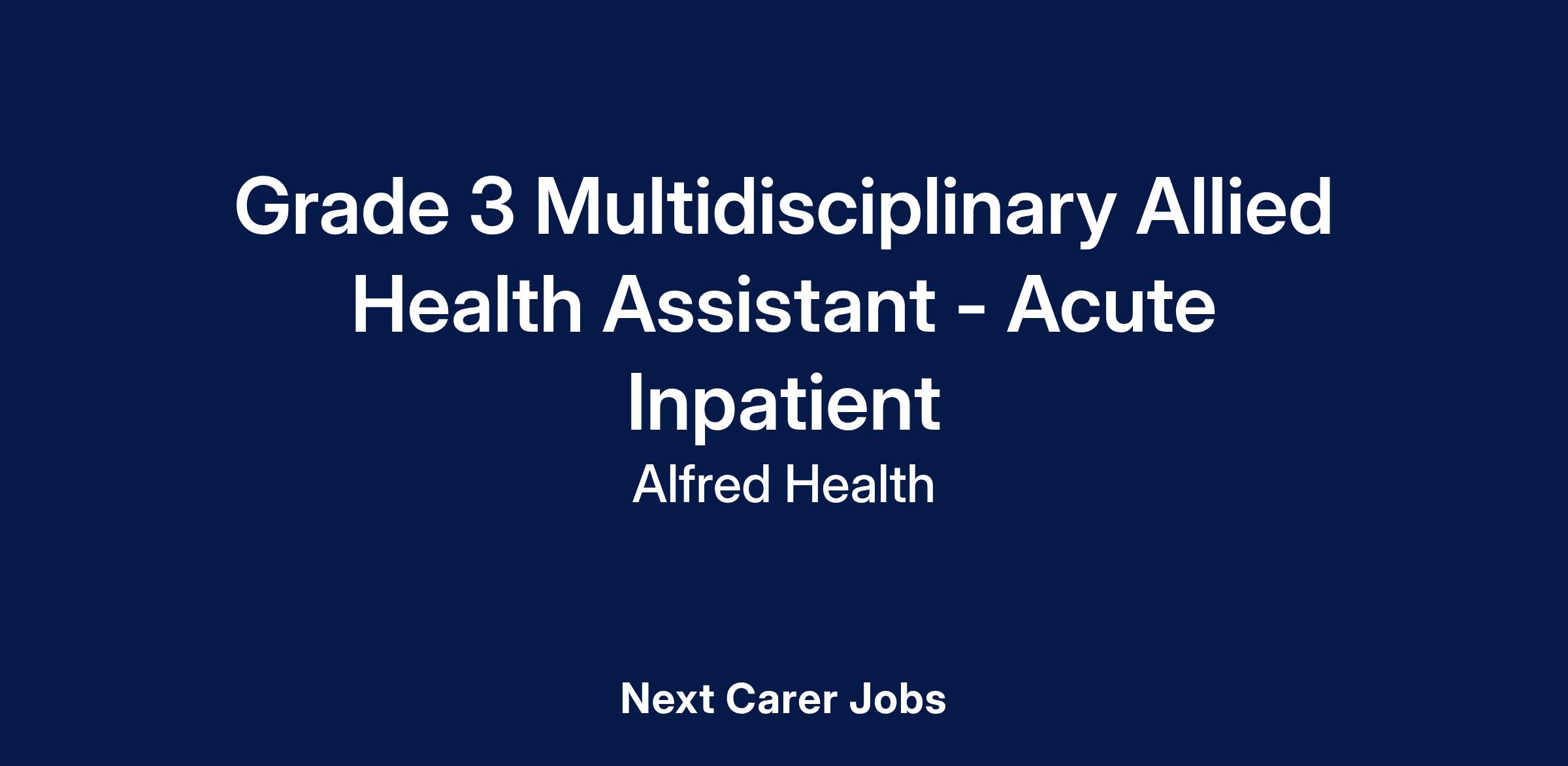 An exciting opportunity to join our Multidisciplinary Allied Health Assistant Department at Alfred Health!