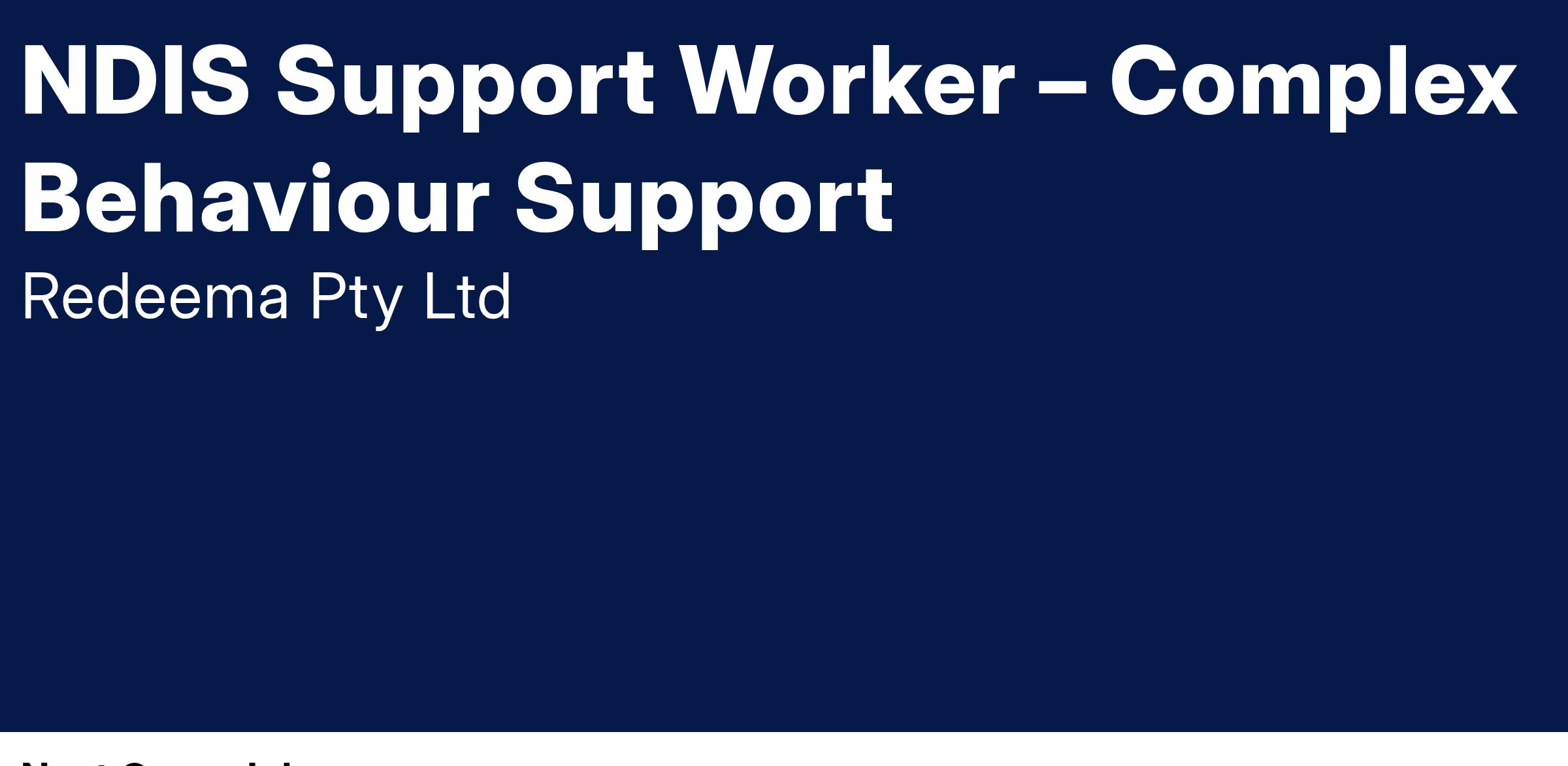 Disability Support Worker - Complex Behaviour Support