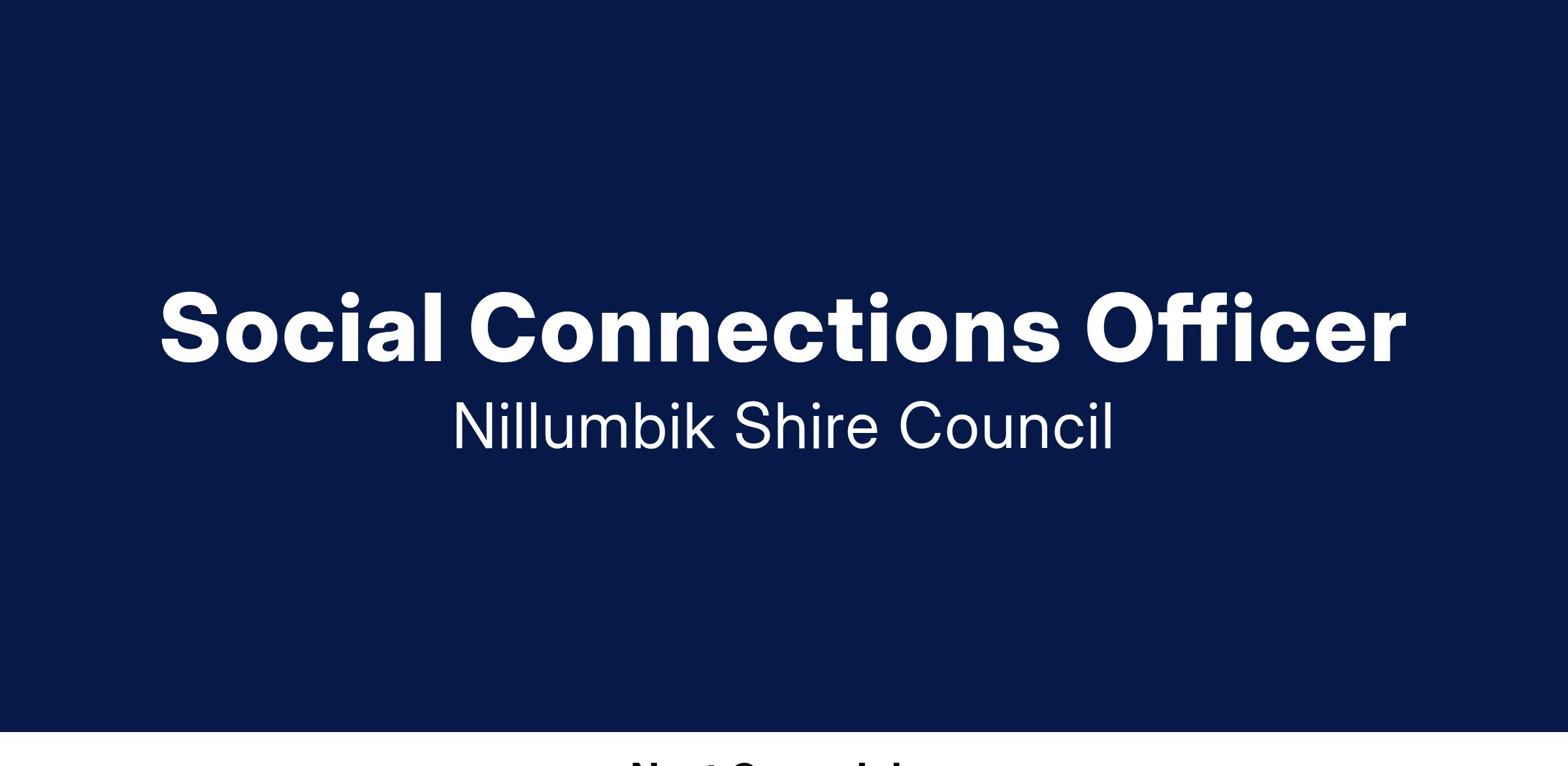 Join our passionate Ageing Well team at Nillumbik Shire Council and make a real difference in the community! As the Social Connections Officer you will be responsible for developing, implementing and evaluating initiatives, programs and activities that foster social connections for people over 55 living in Nillumbik. In this dynamic role, your day-to-day work will involve engaging with community members, implementing programs and events, liaising with key stakeholders and identifying and addressing barriers to social connection. You will also play a key role in supporting the broader Ageing Well initiatives across Council.