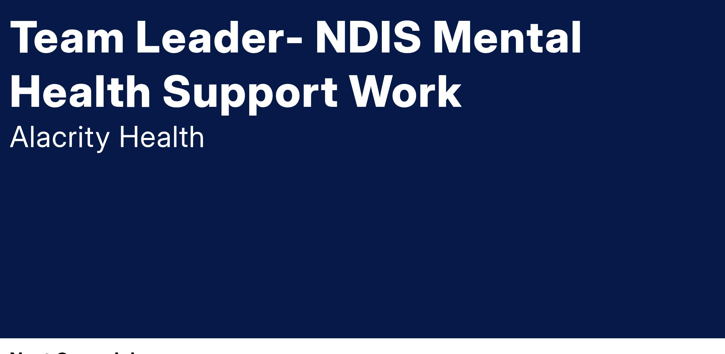 Alacrity Health is seeking a Team Leader to join our exciting team! Join a service with an amazing culture that is leading the way in providing ethical, progressive, transparent mental health specialist services in Victoria.